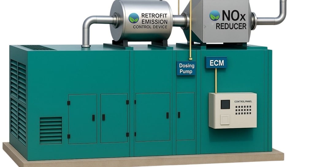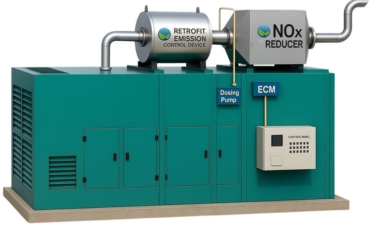 The NOx Reduction System is a specialized emission control solution developed to reduce nitrogen oxide (NOx) emissions from diesel generator exhaust. Utilizing advanced catalytic technology, the system converts harmful NOx gases into harmless nitrogen and water vapor. It is precisely engineered to operate under varying exhaust temperatures and load conditions, ensuring reliable performance during both standby and continuous operations. By effectively lowering NOx levels, the system supports compliance with CPCB standards and contributes to improved air quality, making it ideal for hospitals, data centers, and critical infrastructure DG installations.