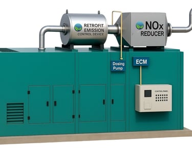 The Retrofit Emission Control Device (RECD) is an advanced exhaust after-treatment system engineered for diesel generator sets to comply with CPCB emission norms. It integrates high-efficiency Diesel Oxidation Catalyst (DOC) and Diesel Particulate Filter (DPF) technologies to significantly reduce particulate matter (PM), carbon monoxide (CO), and unburnt hydrocarbons (HC). Designed for optimal exhaust backpressure control, the RECD ensures engine performance is not compromised while delivering consistent emission reduction. The system is robust, thermally stable, and suitable for continuous DG set operations across industrial and commercial environments.